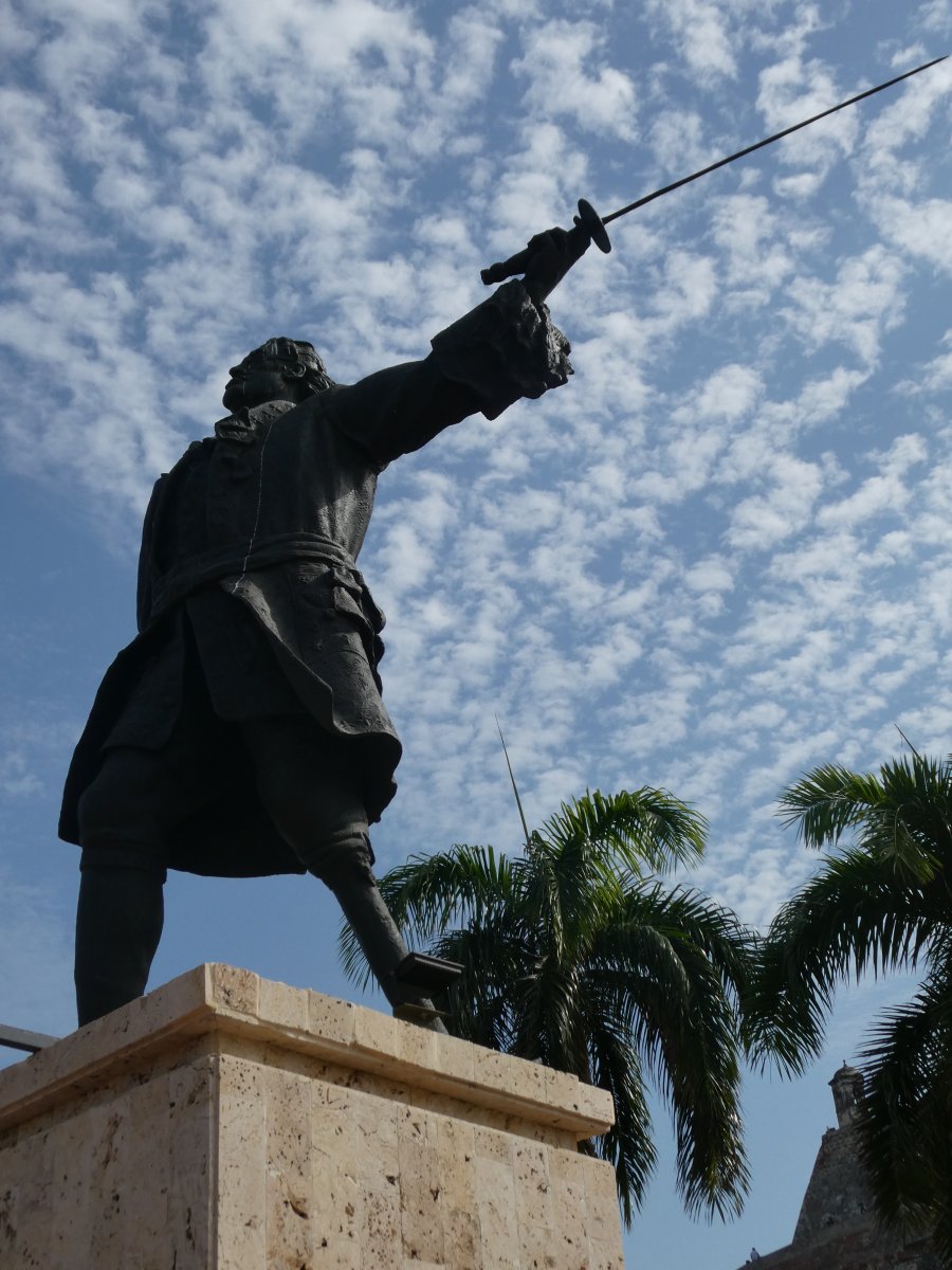 Blas de Lezo defended Cartagena spectacularly against the British.You will note that he has a wooden leg. One cannot see from here that is right arm is also limp.