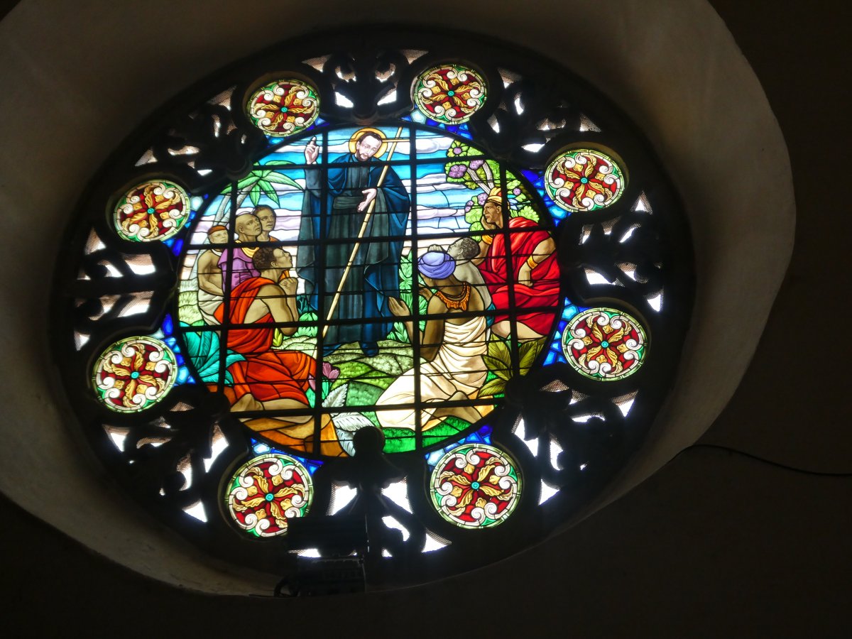 Window honouring San Pedro de Claver who dedicated his life to helping the slaves
