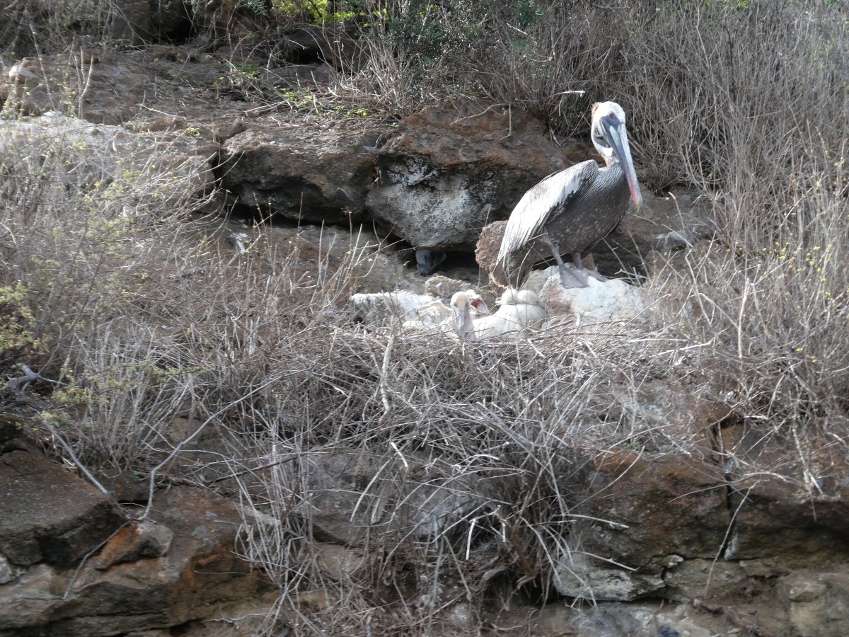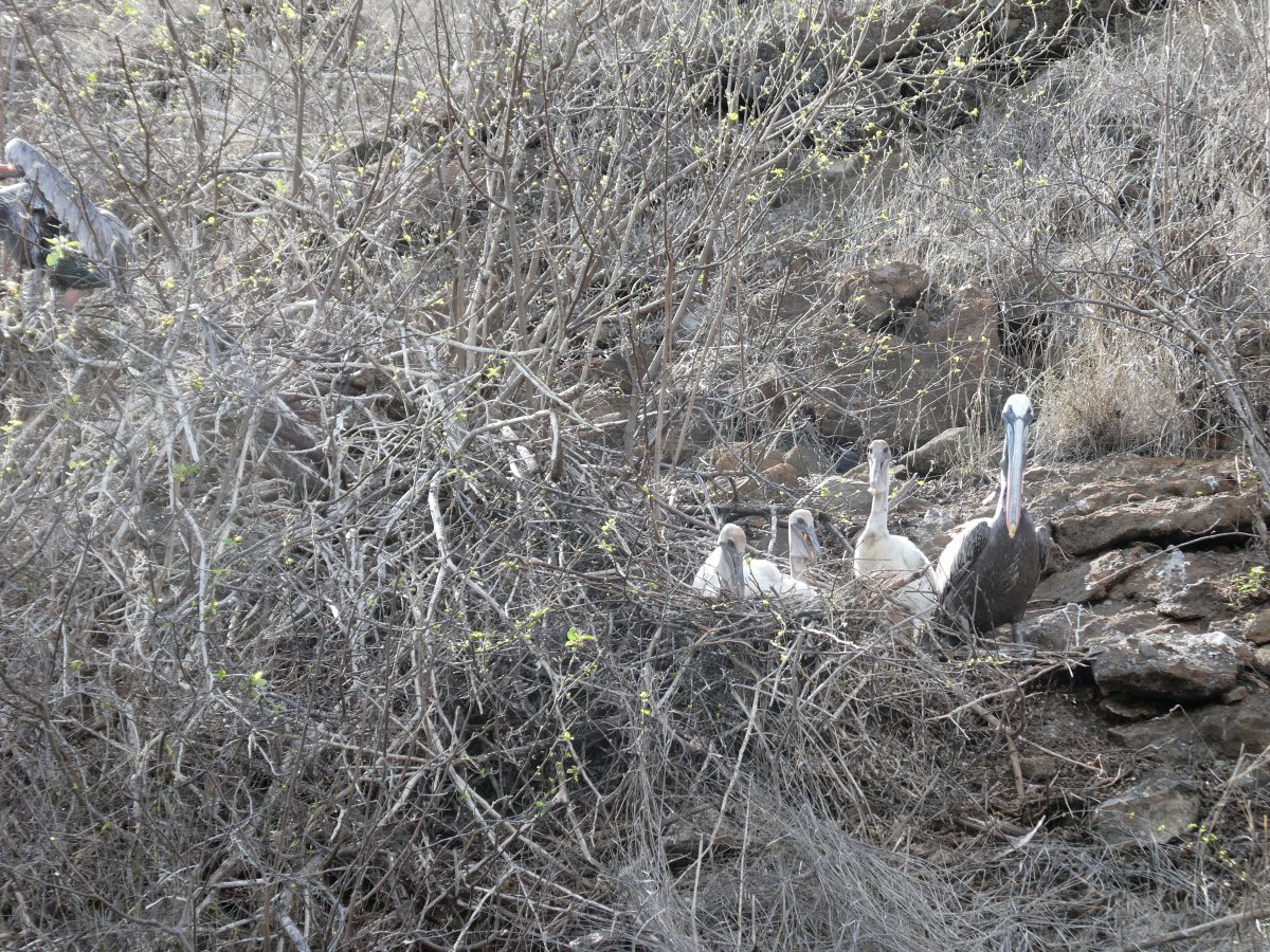 There were quite a lot of pelicans around and the two nests, one with much younger chicks and the other with older ones, were no more than 2-3 meters away from each other.