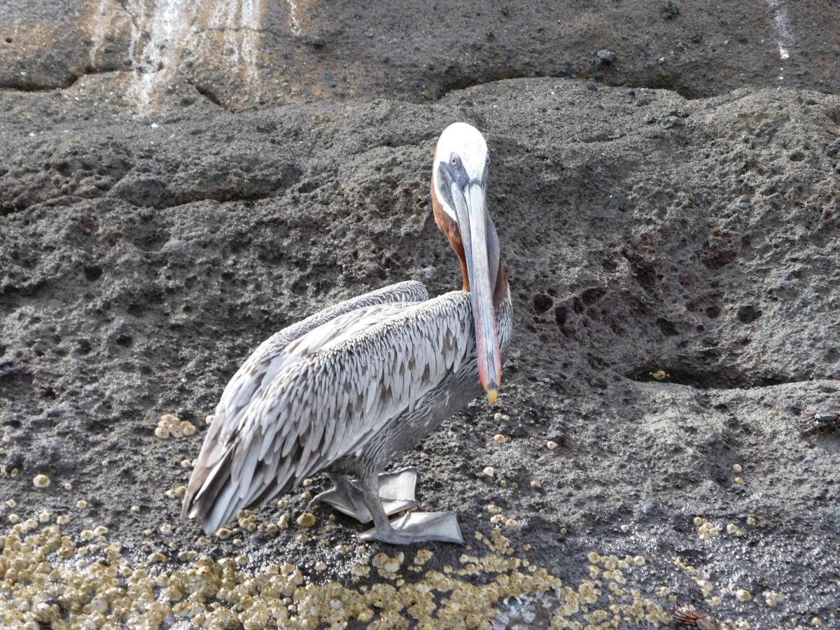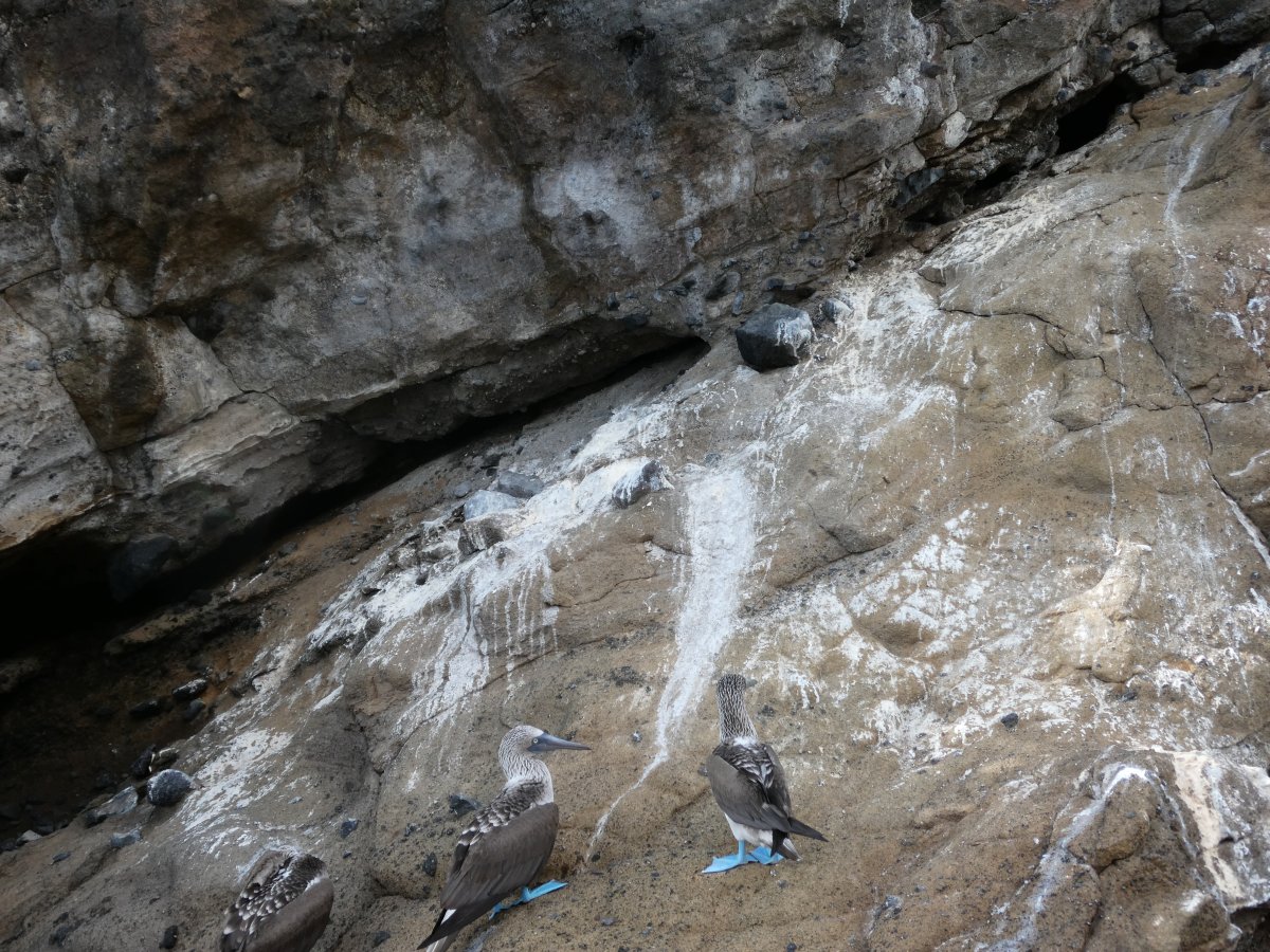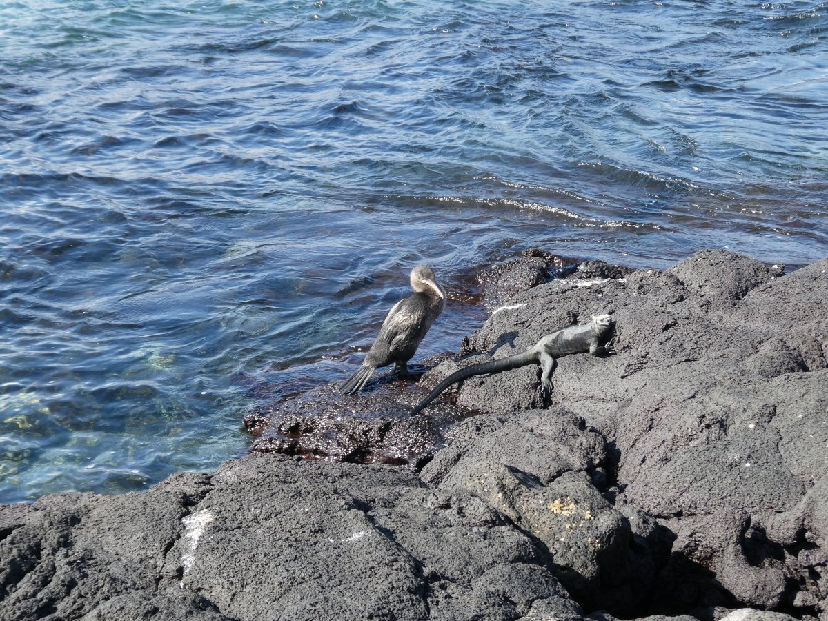 This picture shows how the various birds and animals don't get in each other's way. From left to right we have a pelican, iguana, blue-footed boobies (I'll get to them later) and a flightless cormoran.