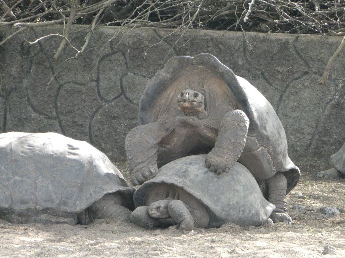 One of the tortoises at the breeding center seemed to understand what his job was. and took care of business. The others discreetly looked away.