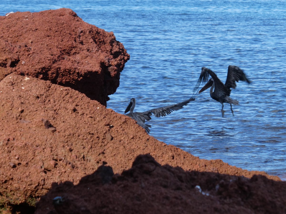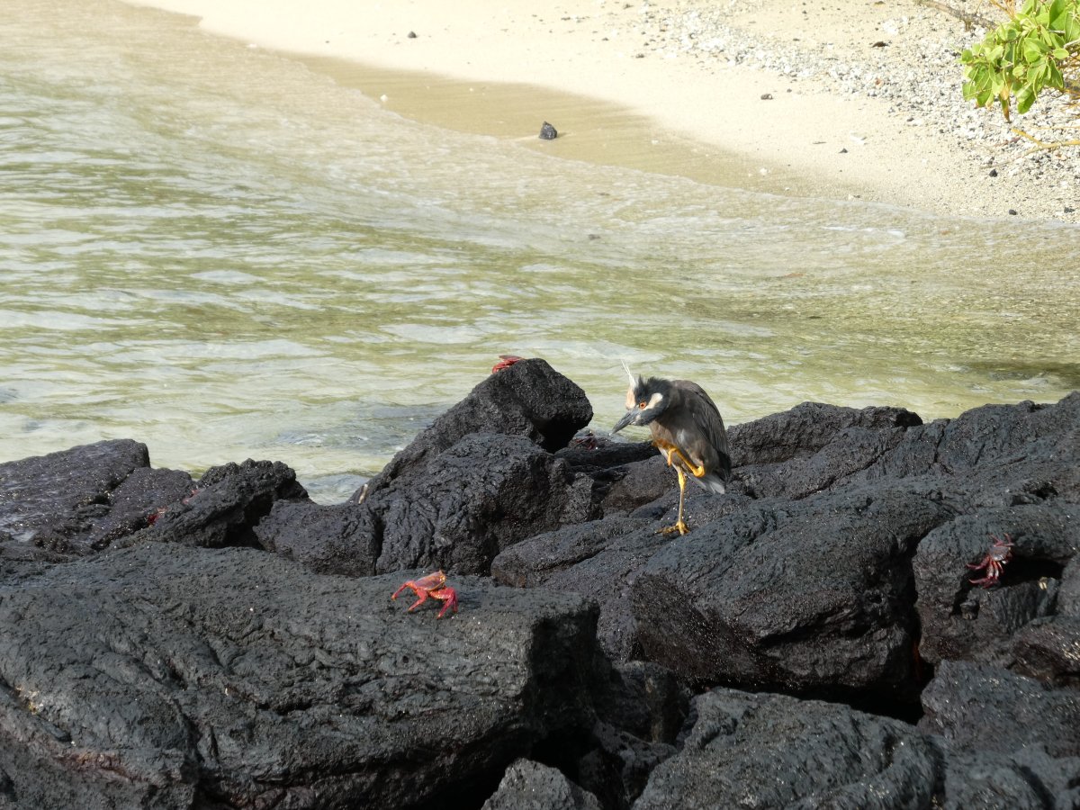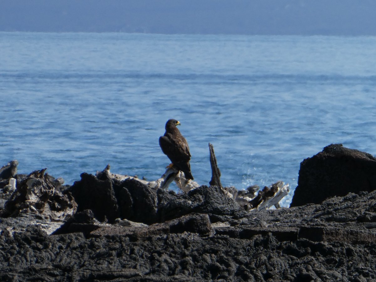 We saw quite a few lava fields on which pretty much only cactus grew, but which many animals seemed to like. The marine iguanas seemed to just be hanging around in the water. The hawk surveyed the surroundings for a suitable snack.