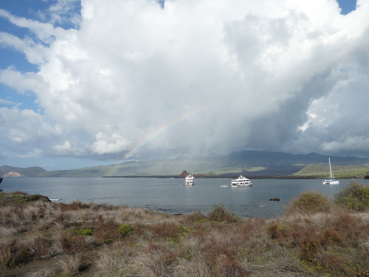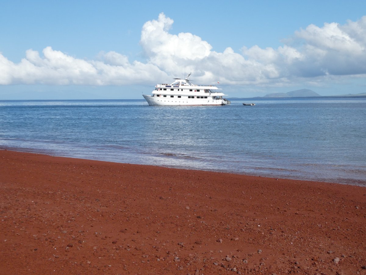 Rabida is remarkable for its red sand. The National Geogrpaphic Expeditions boat was parked nearby. We snorkeled there and around Chinese Hat also.