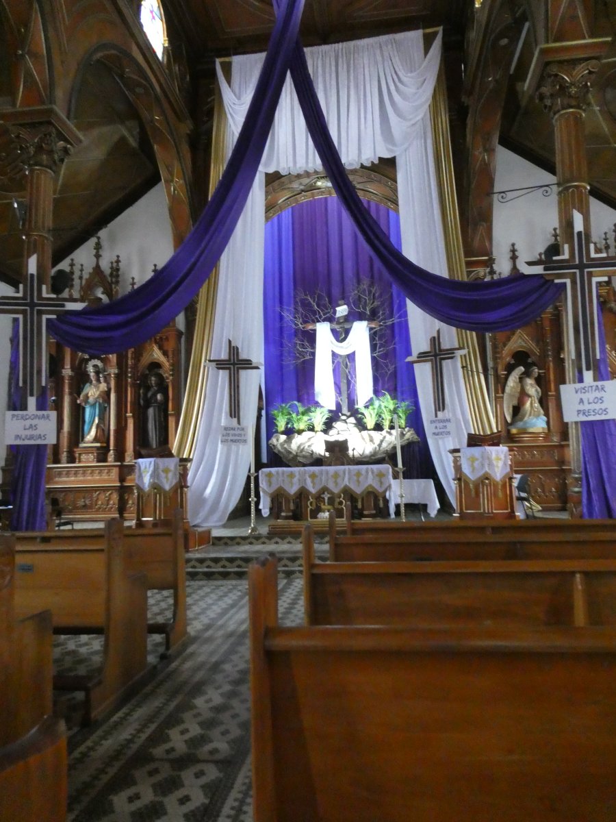 The inside of the church was quite nice, but for me somewhat unusual. The cross overviewing the proceedings, but only a white cloth on it (no Jesus). I did not find out what the tradition was.